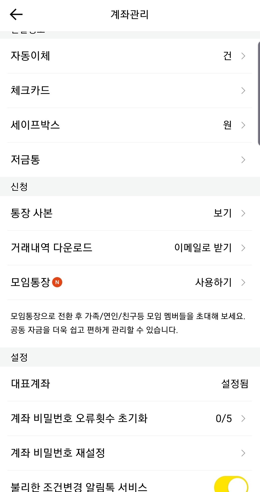 3. 카카오뱅크 관리버튼을 눌러보자.
