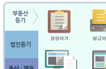 등기는 크게 부동산, 법인, 동산 및 채권 담보 등기로 나뉘게 되는데 오늘 우리가 검색할 것은 아파트 등기 열람이기 때문에 부동산 등기를 눌러 열람해야합니다. 회원가입과 로그인이 진행되셨다면 부동산등기 열람하기를 눌러줍니다. 아파트는 부동산에 해당하기 때문에 부동산 등기 > 열람하기로 들어가야 정확한 열람이 가능합니다.